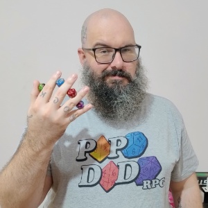 Mestre e jogador de RPG há mais de 20 anos, marido da Elisinha e pai do Vini; criador do Papo Dado RPG, Mestre profissional e co-fundador dessa lindeza de plataforma que é o MesaQuest! Eu sempre costumo dizer que "eu jogo pela historinha", pois gosto mesmo é de contar histórias! Meu foco é sempre na narrativa, na construção do mundo e no desenvolvimento dos personagens! Eu posso até esquecer ou errar uma regra ou outra, mas todo NPC no meu jogo tem uma vozinha e uma personalidade diferente!